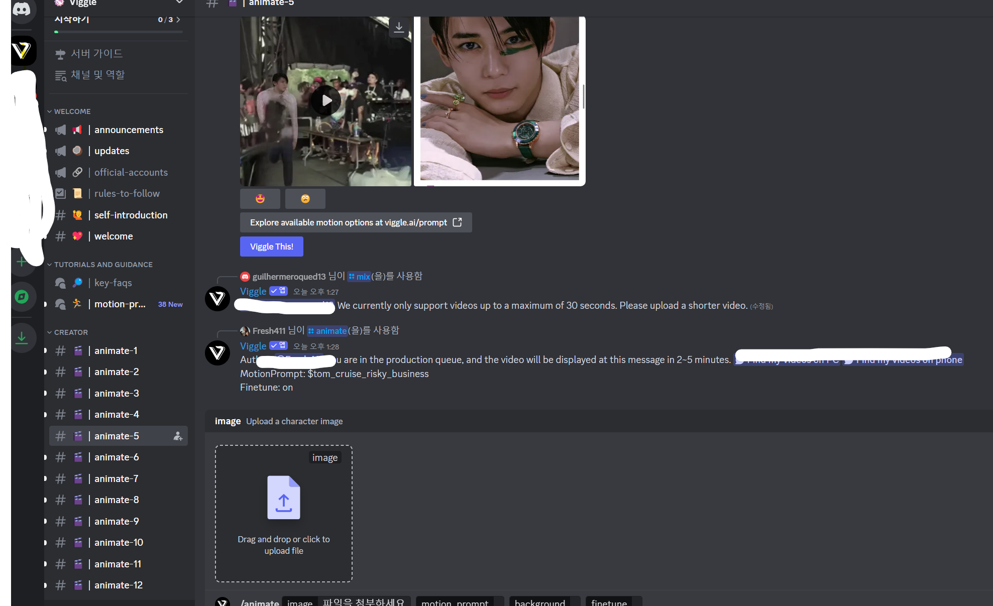 위의 /animate 명령어로 각 프롬프트에 맞게 진행 .