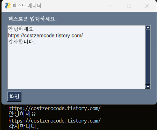 이 예제는 텍스트 에디터를 사용하여 텍스트를 입력하는 윈도우를 생성합니다.
