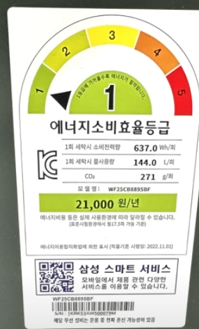 삼성껀 1년 전기세 21,000원 정도. 효율은 좋아 보인다.