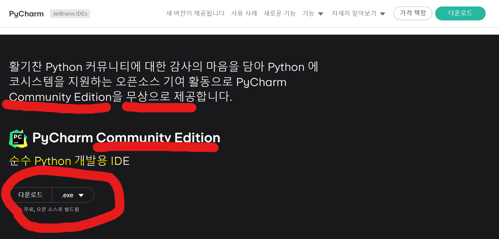 JetBrains의 공식 웹사이트 아래 한국어 버젼 기준